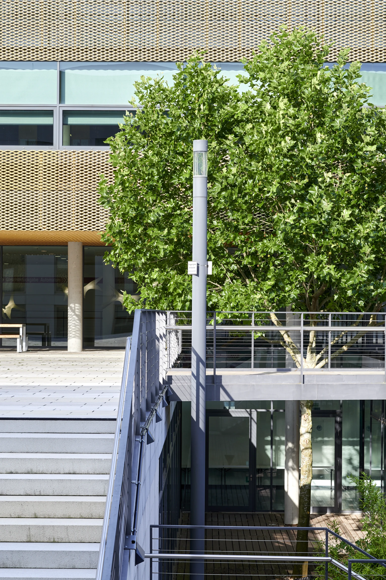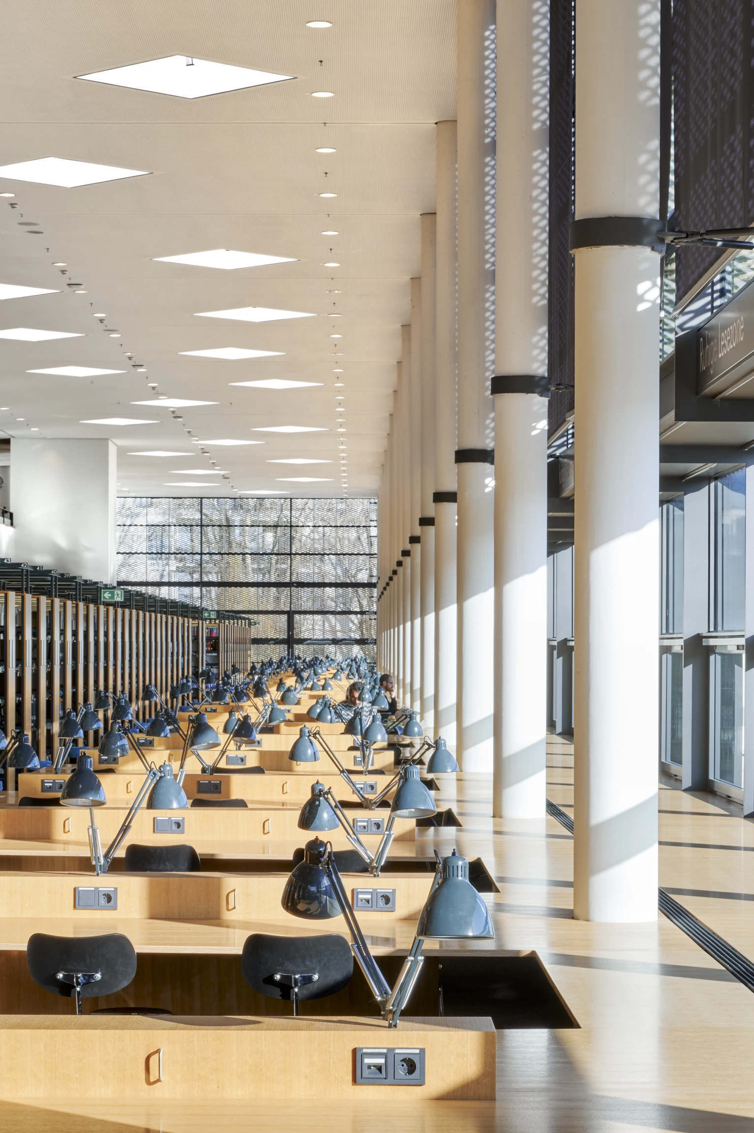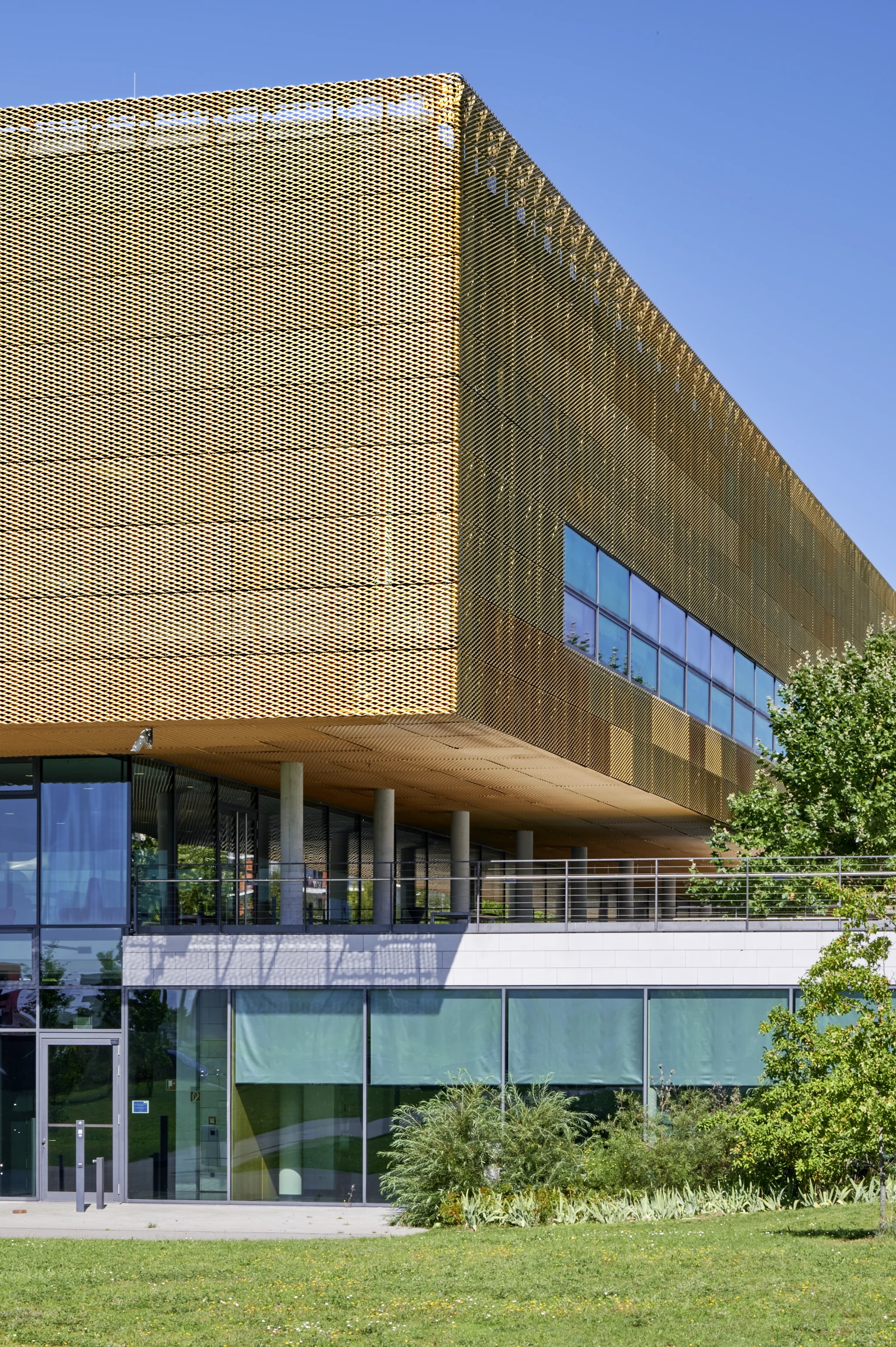 In der unteren Ebene befinden sich 5 Hörsäle. Die Bibliothek befindet sich im Obergeschoss. In der mittleren Ebene befinden sich Büros sowie eine Cafeteria am Zugang Max-von-Laue Straße. Der Entwurf des Gebäudes stammt vom Dortmunder Architekturbüro Gerber Architekten und wurde im Jahr 2011 fertiggestellt. Die folgenden Architekturfotografien illustrieren die Gestaltung dieses schönen Entwurfs.