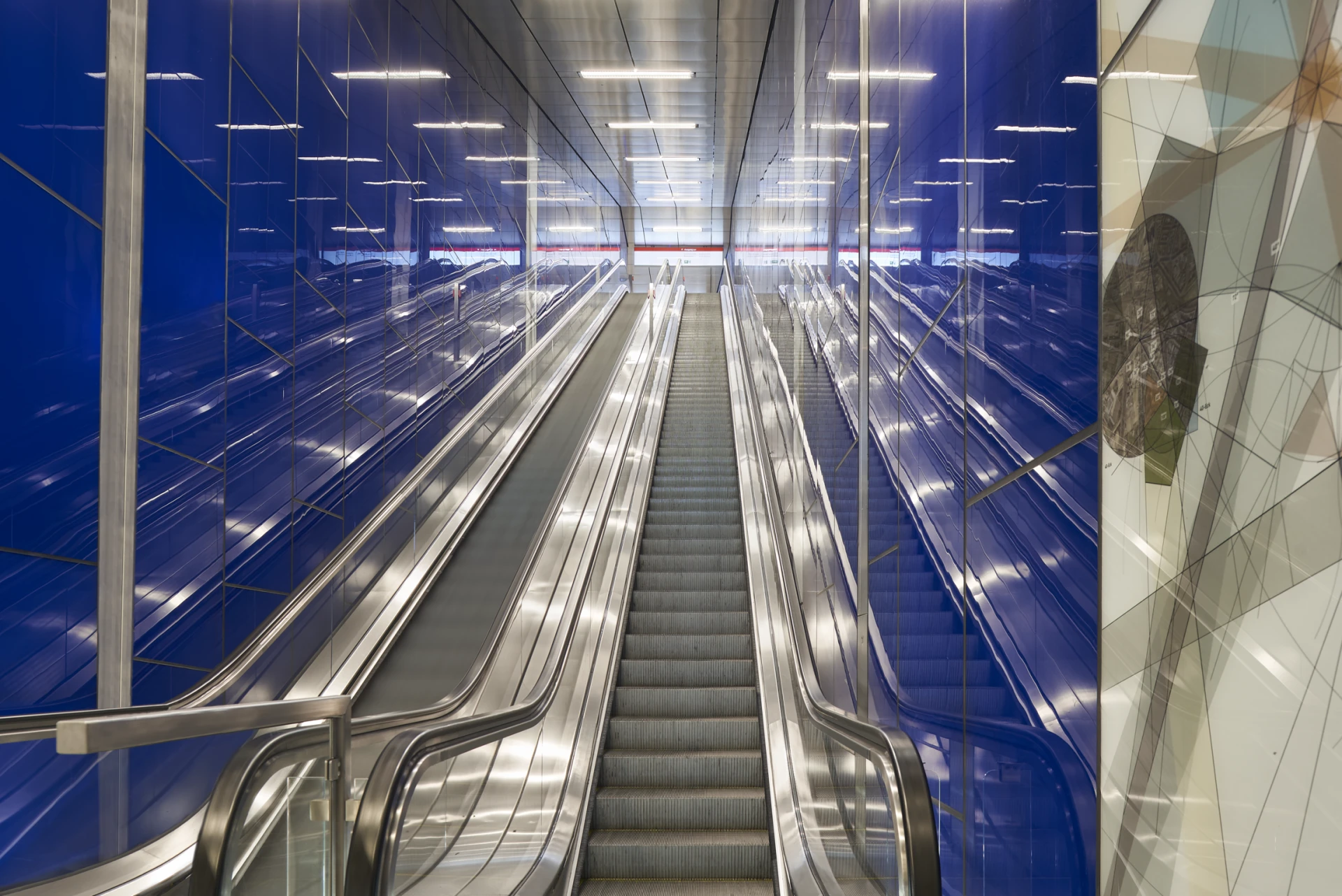 Auch architektonisch wird eine direkte Sichtbeziehung durch ein Oberlicht über den Gleisen geschaffen. Der Stationsraum wird als Erweiterung des urbanen Raums verstanden. In den folgenden Architekturfotografien können Sie sich selbst ein Bild der Gestaltung machen.