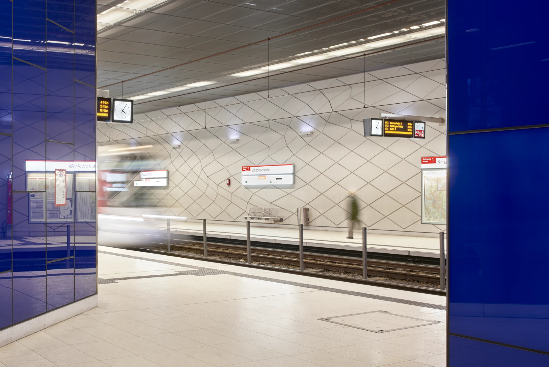 Die Architektur des U-Bahnhof Schadowstraße fügt sich in die offene Gestaltung der Wehrhahn-Linie Düsseldorf ein. Die Ausrichtung des Stationsraums liegt parallel unter der beliebten, namensgebenden Einkaufsstraße und nimmt die Fließrichtung der Menschenströme auf. Im inneren der Station erwartet die Fahrgäste eine interaktive Videoinstallation der Künstlerin Ursula Damm, welche das belebte Treiben im Stadtraum audiovisuell abstrahiert.