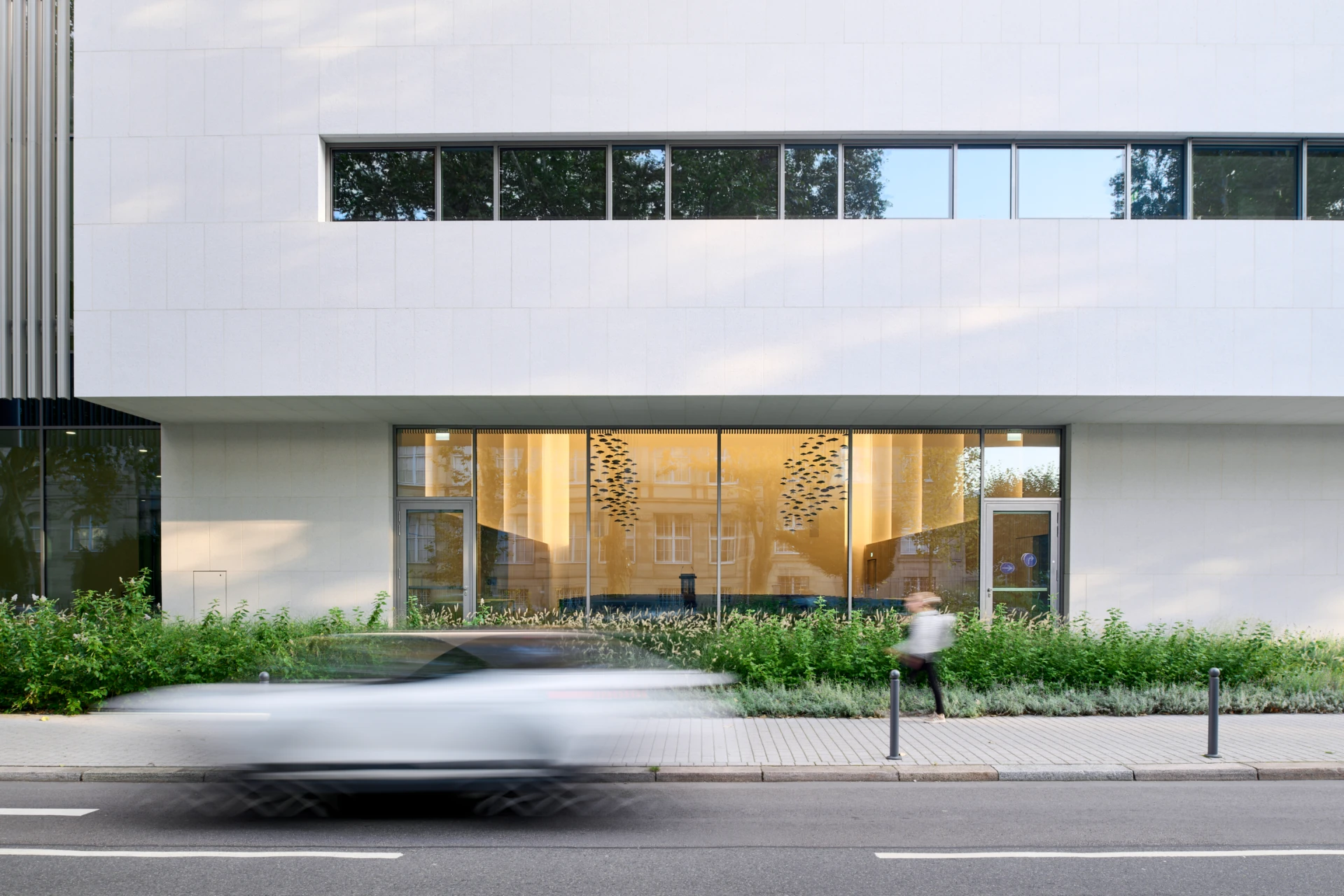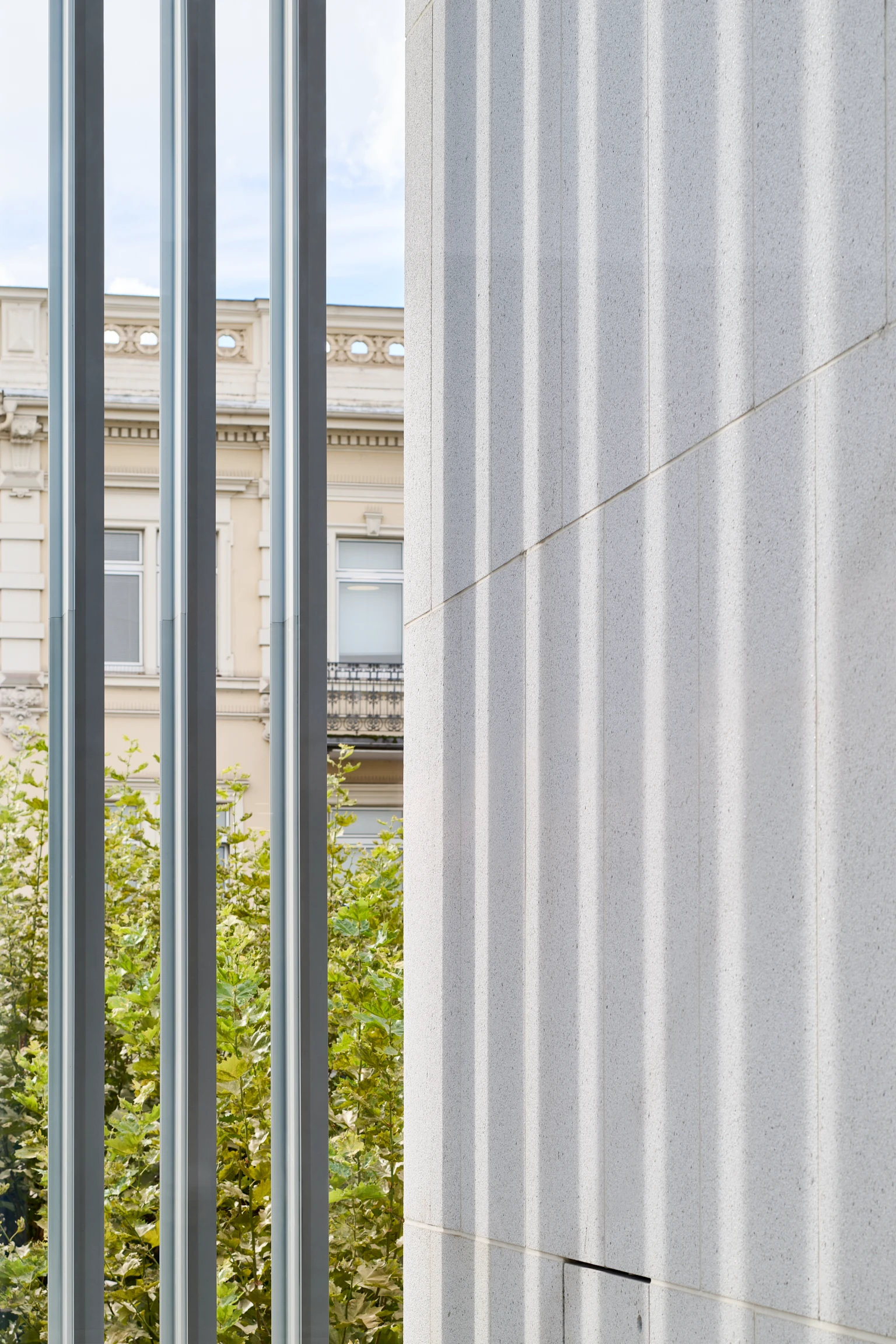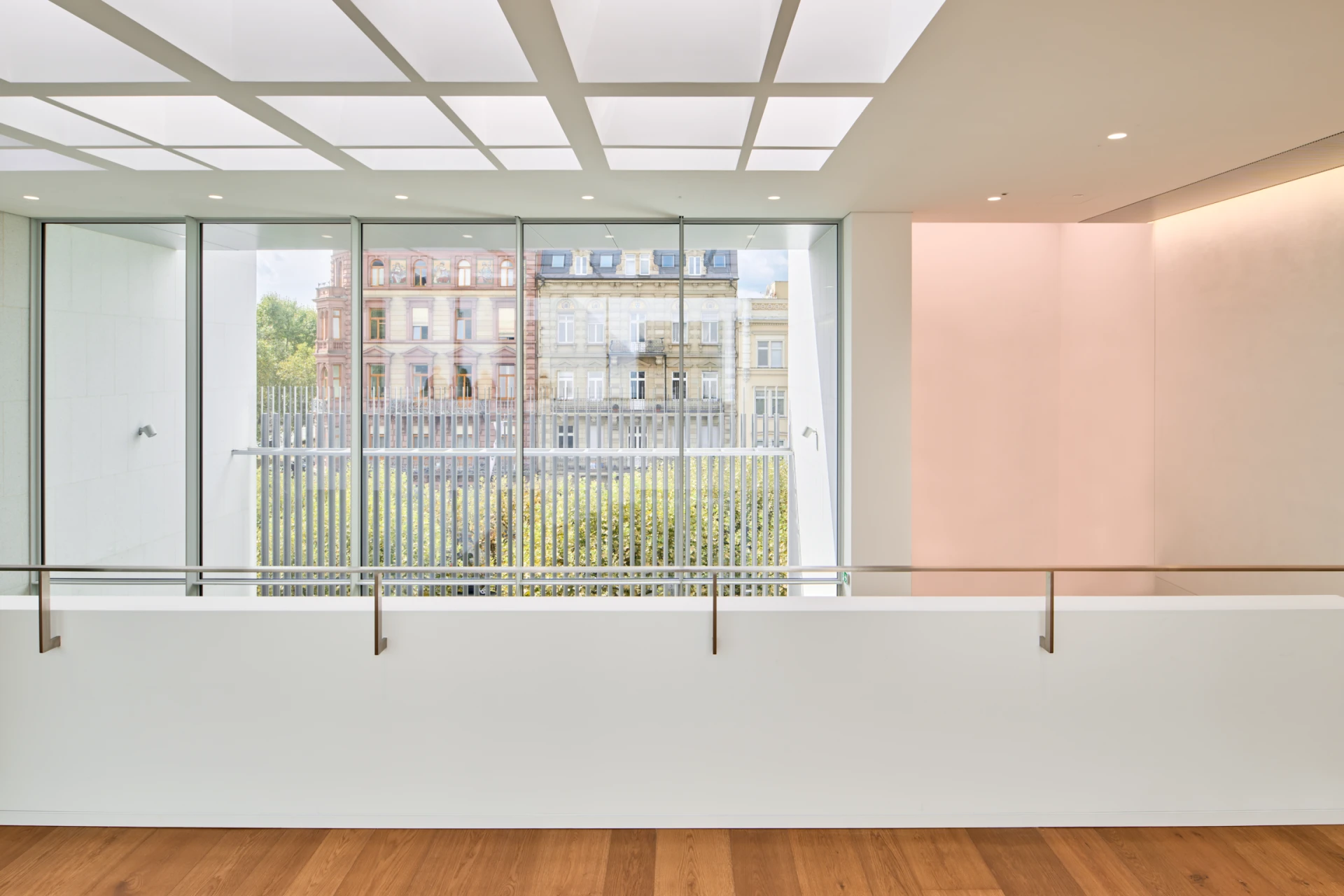In traditional Japanese style, there is an inner courtyard in the center of the museum, which is home to a sculpture by Eduardo Chillida and a 60-year-old fan maple tree. Generous window fronts up to 6 meters high connect the building with the city outside. The volume of the building also deliberately takes up and continues the lines of the surrounding buildings. The structure of the museum is made up of 4 cuboids, which form the large exhibition rooms. The bright inner courtyard connects these rooms and is a constant point of reference for visitors. It also provides the rooms with daylight and makes the interior of the building appear open and transparent.