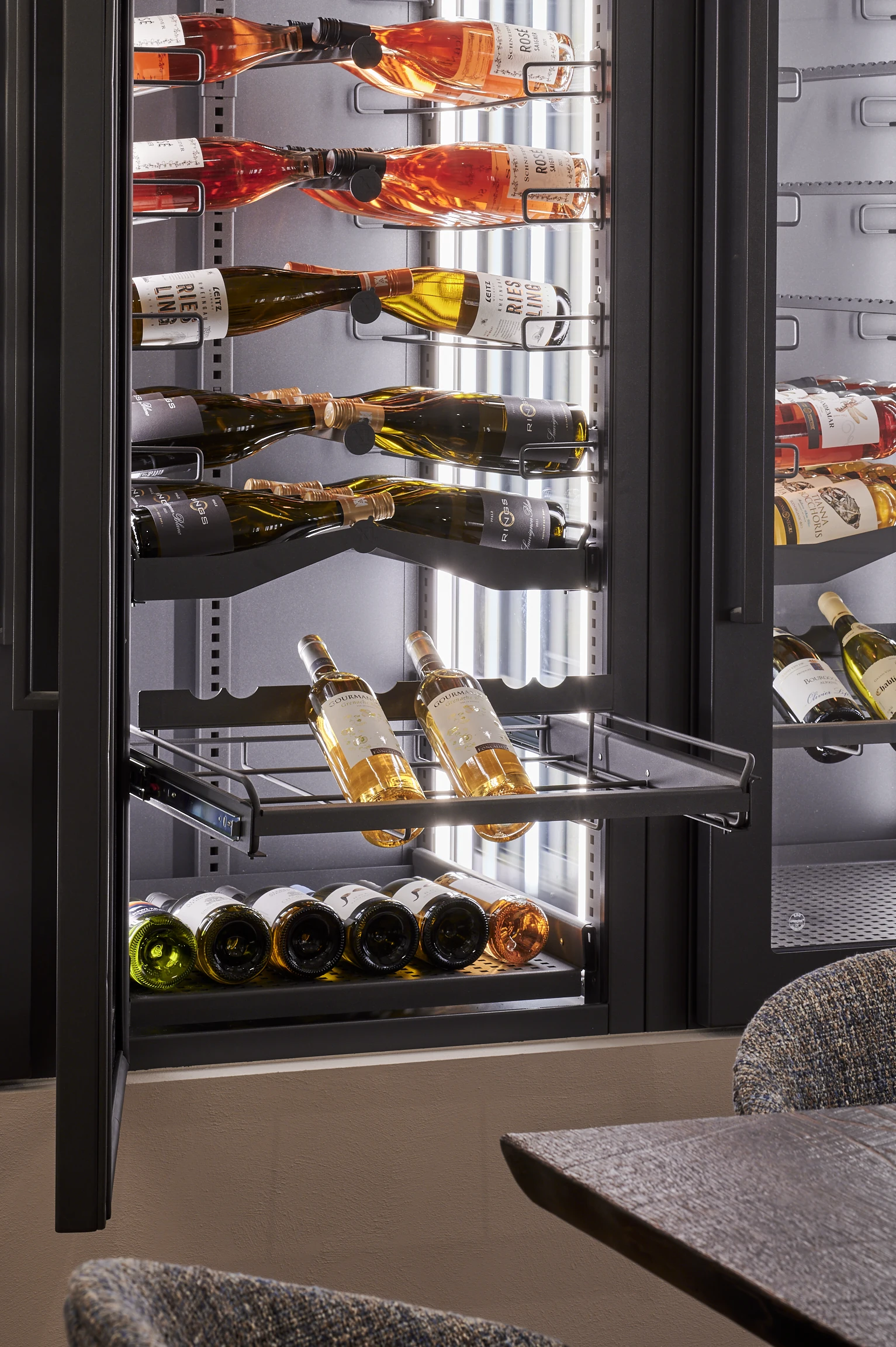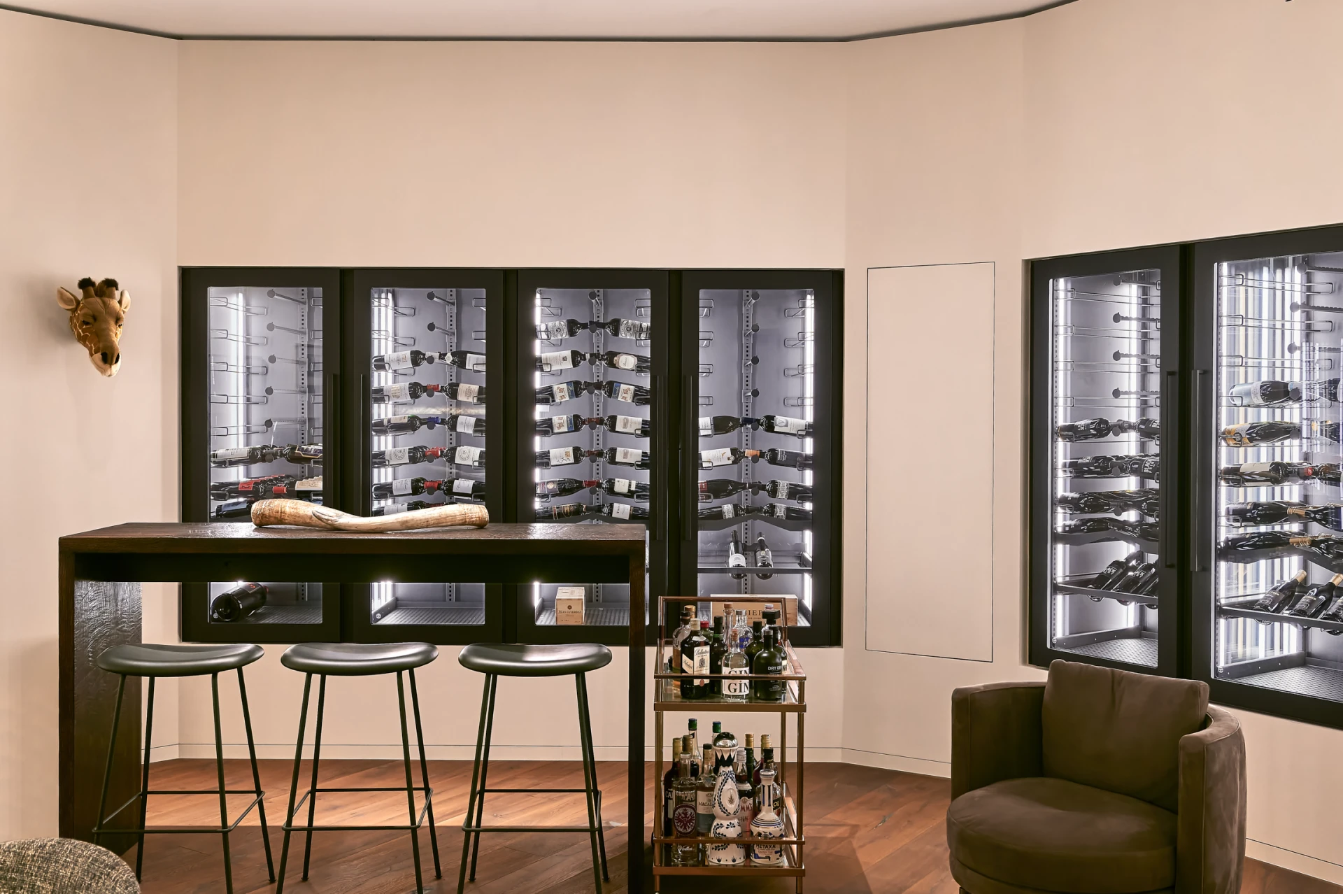 Covini GmbH from Lustenau in Austria is a specialist when it comes to wine storage. From wine cabinets for the gastronomy sector to customised wine cellars, they offer the best solution for private and commercial customers. In a pleasantly elegant atmosphere and luxurious interior, we were able to photograph the ambience of a private wine cellar in a suburban villa in Frankfurt, with the Xi wine climate cabinets taking centre stage.